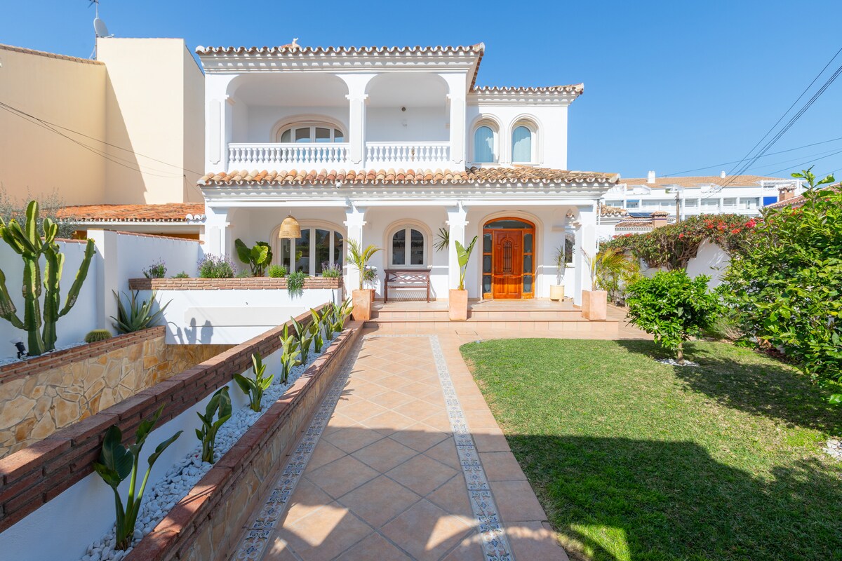Villa independiente a 10 minutos andando de la playa en Torremolinos. 4 dormitorios, 2,5 baños, jardín privado con barbacoa y bañera de hidromasaje. Admitimos mascotas. Posibilidad de aparcar en la puerta. Barrio residencial tranquilo, ideal para familias y grupos que buscan espacio, privacidad y buena conexión con el centro y la Costa del Sol.El espacioSumérgete en una villa que fusiona el estilo bohemio con el confort moderno. Los tonos neutros, la madera y las fibras naturales crean una atmósfera de elegancia serena, diseñada para ofrecerte comodidad, espacio y total privacidad.Distribución Interior: Un espacioso salón con una acogedora chimenea, perfecto para veladas íntimas. Cocina totalmente equipada para que prepares tus platos favoritos. 4 dormitorios amplios y luminosos. El dormitorio principal incluye un balcón privado, ideal para disfrutar de momentos de calma. 2 baños completos y 1 aseo. Uno de los baños cuenta con una gran bañera de hidromasaje para tu relajación total.Zonas Exteriores: Un porche amueblado, perfecto para conversar y relajarse a la sombra. Terraza para tomar el sol y disfrutar del clima de la Costa del Sol. Zona de cocina exterior con barbacoa para disfrutar de comidas al aire libre. Jardín privado con plantas mediterráneas que te conectará con la naturaleza.Servicios y zonas comunesTendrás acceso exclusivo y privado a toda la villa, incluyendo el jardín, la terraza y todas sus instalaciones, garantizando una privacidad absoluta durante tu estancia. Tu comodidad es nuestra prioridad, por lo que incluimos: Llegada autónoma (Self check-in) WiFi de alta velocidad en toda la propiedad Aire acondicionado y calefacción Cocina totalmente equipada (utensilios, horno, microondas, cafetera, frigorífico) Ropa de cama y toallas de calidad Lavadora y zona de secado Smart TV para tu entretenimientoOtros aspectos destacablesEsta propiedad está registrada oficialmente en el Registro de Turismo de Andalucía con el número VFT/MA/62207, garantizando todos